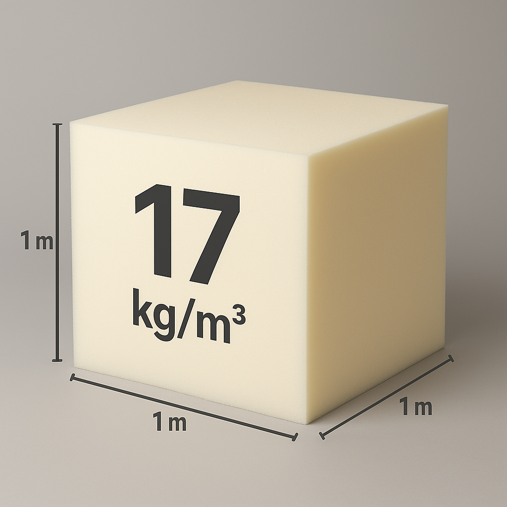 ابر اسفنج ۱۷ کیلویی یک اسفنج با دانسیته متوسط است؛ یعنی اگر یک بلوک اسفنج استاندارد ۱×۱×۱ متر داشته باشیم، وزن آن باید ۱۷ کیلو باشد. این عدد نشاندهندهی تراکم، دوام، برگشتپذیری و کیفیت اسفنج است.